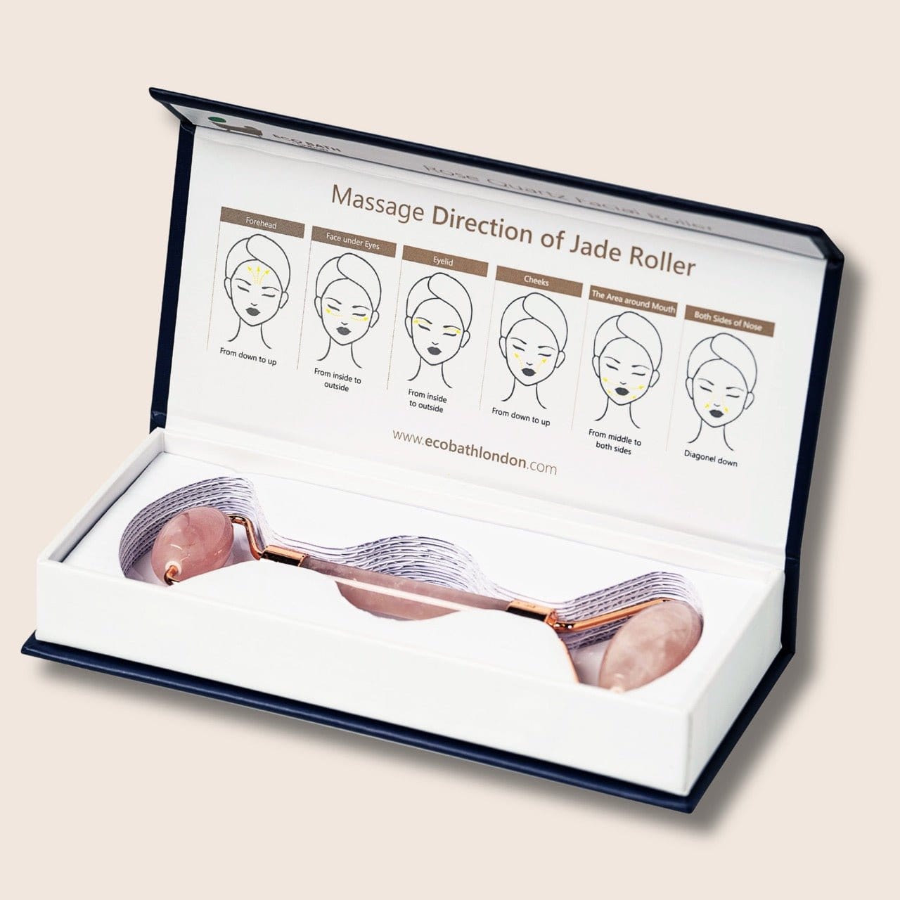 Experience the benefits of a relaxing and rejuvenating facial massage with the Eco Bath London Jade Face Roller - Rose Quartz, the perfect addition to your skincare routine.