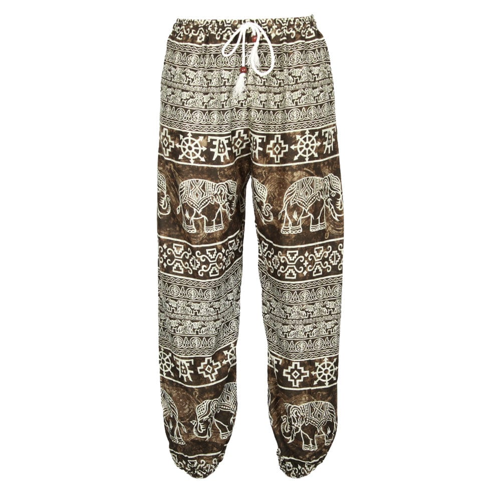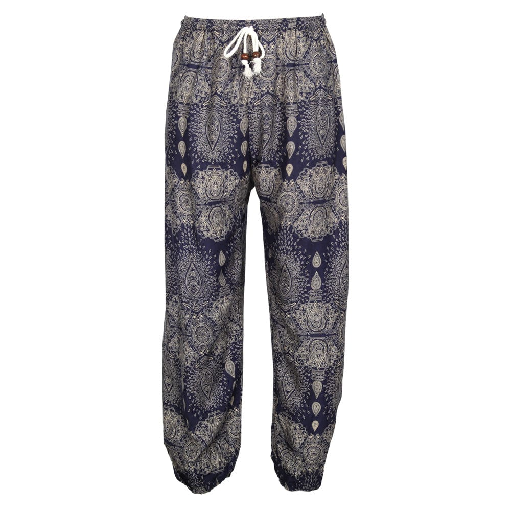 Our unisex harem pants are enduringly popular with blokes. Our plain drop crotch harem pants are excellent night and day, a classic in basic black - or push the boat out with an array of other colours from petrol to red. And our Gringo purple tie dye genie pants go down a storm with the more flamboyant amongst you. Like all of our hippy clothes, they come with a built-in chill out factor! If you're looking for plus size festival outfits - our Thai elephant print harem trousers come in sizes XXL & XXXL too, that's up to a Women's size UK 28.