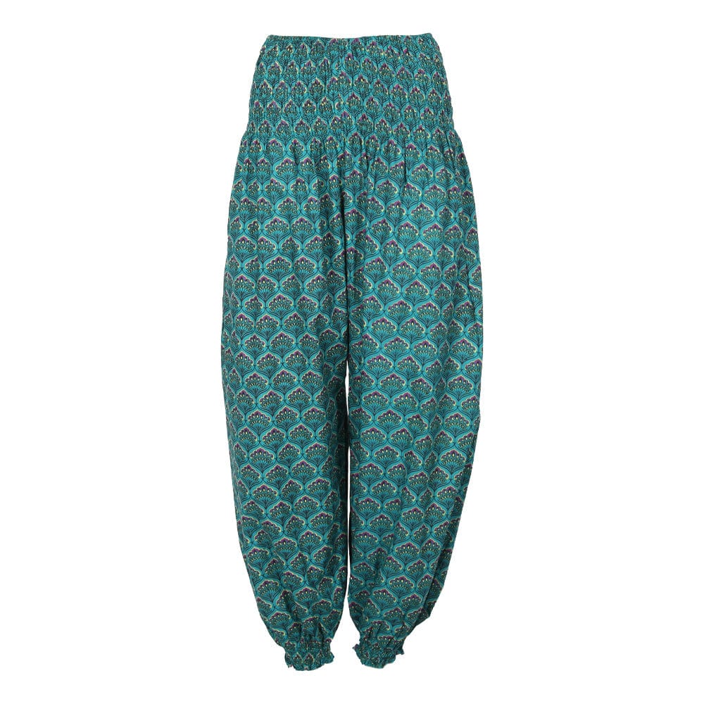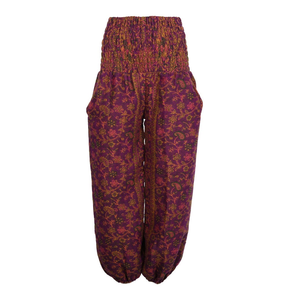 Some people love them high waisted. Some prefer a low waist, especially on long, hot, lazy summer days. We sell long harem pants and shorter ones, some with close-fitting ruched waistlines and others left wonderfully baggy.