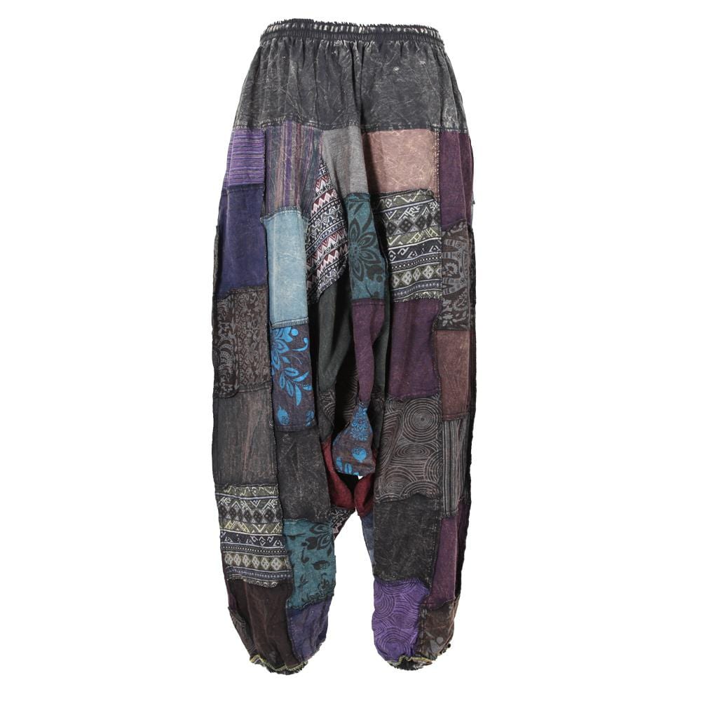 How cool are these men's drop jogger harems? It's a colour thing. The patches used to make them are dark, subtle, and just a little bit spooky, and the overall result is awesome. Can you imagine them worn with a plain black or white T, or a tie-dye t shirt? Fab. These patchwork drop crotch jogger harem pants come with two side pockets and a drawcord elasticated waist, just as big on drama and practicality as they are on style.