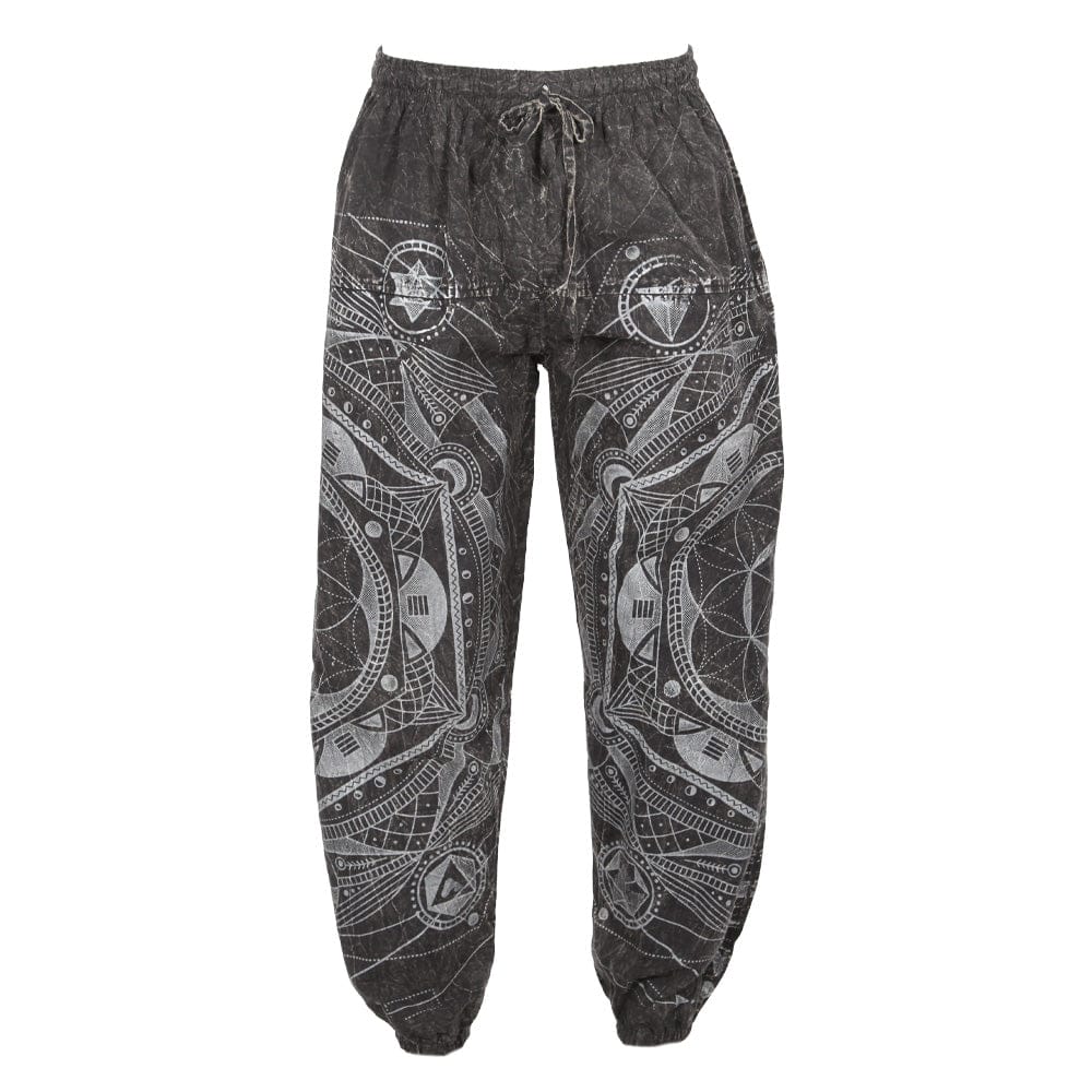 Our jogger pants always g down a storm. How about these, with their rich, deep purple background and intricate abstract designs in crisp white? Wow. These purple jogger trousers feature a classic elasticated waist, drawstring tie and gathered ankles, and the colour, being nice and subtle, goes perfectly with black, white or toning shades. Lounge around in them, dress them up if you like, they'll see you through all sorts of occasions.