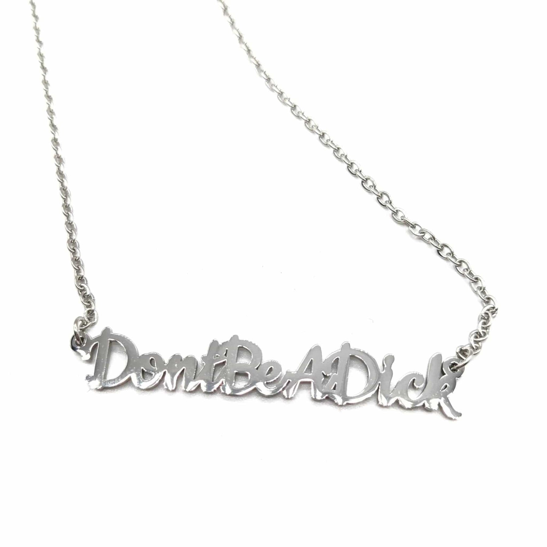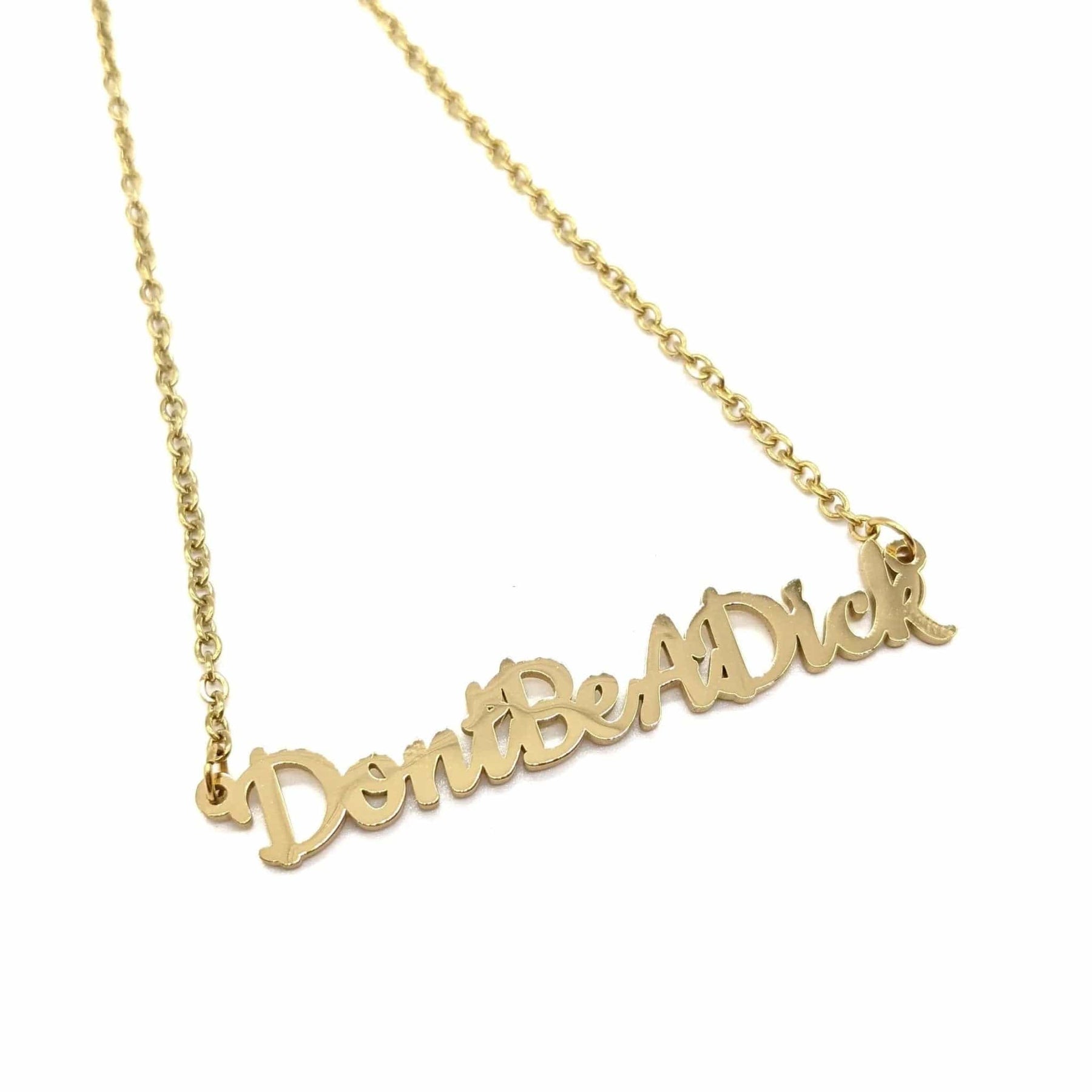 Gold, rose gold or Silver stainless steel custom carved DontBeADick mounted on 45cm long stainless steel chain