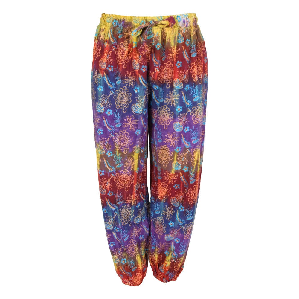 They might look like boring blobs of jelly. But there's a lot more to the jellyfish than meets the eye. They're so perfectly attuned to their environment that they've been drifting around earth's oceans for more than 500 million years, long before humans were a twinkle in the universe's eye. These awesome jellyfish harem pants celebrate this extraordinary creature, featuring classic harem styling and available in a choice of colours to beautiful you'll want to wear them all the time. Add a colourful or plain top and go stun everyone who sees you!
