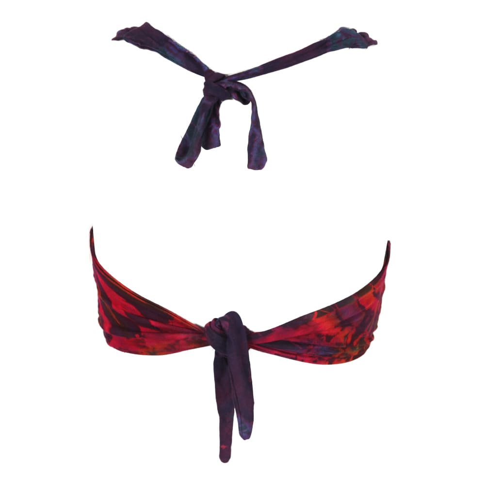 Viscose jersey fabric feels lovely and fresh and cool. Add some Spandex - aka Lyrca - to the mix and you always get an awesome fit. But the drama is all bout the details in this fabulous knotted jersey tie dye triangle top. How clever! The knotted feature at the front is brilliant, enhanced by the pretty straps. Because it's tie dye, each one is slightly different. The perfect festival top, don't you think? Amazing with our harems, hippy skirts and wide-leg trousers, awesome with your jeans or cut-offs, always dramatic.