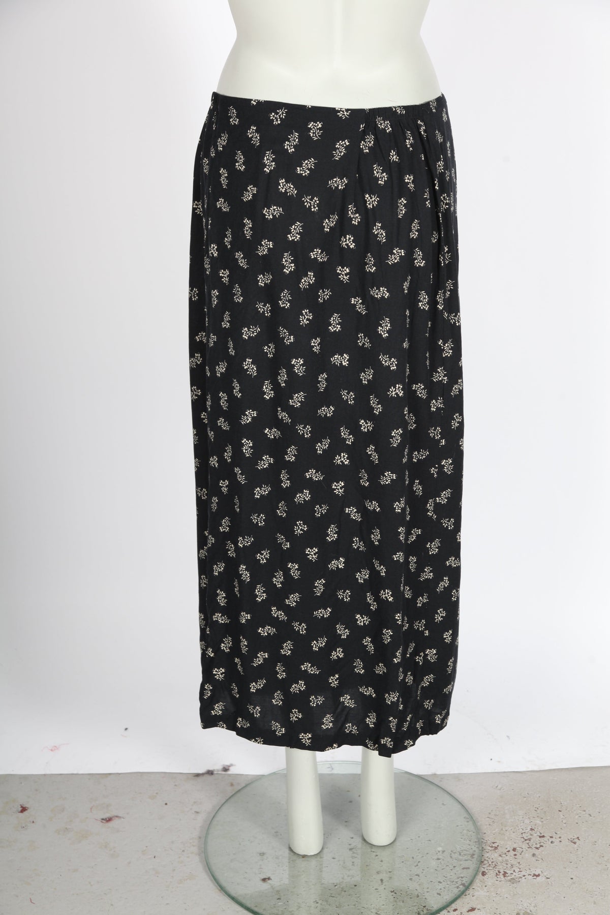 Flowery vintage full length wrap skirt with buttons to secure. Simple straight shape, a little elastic in the back to adjust to size. Scattered floral pattern.