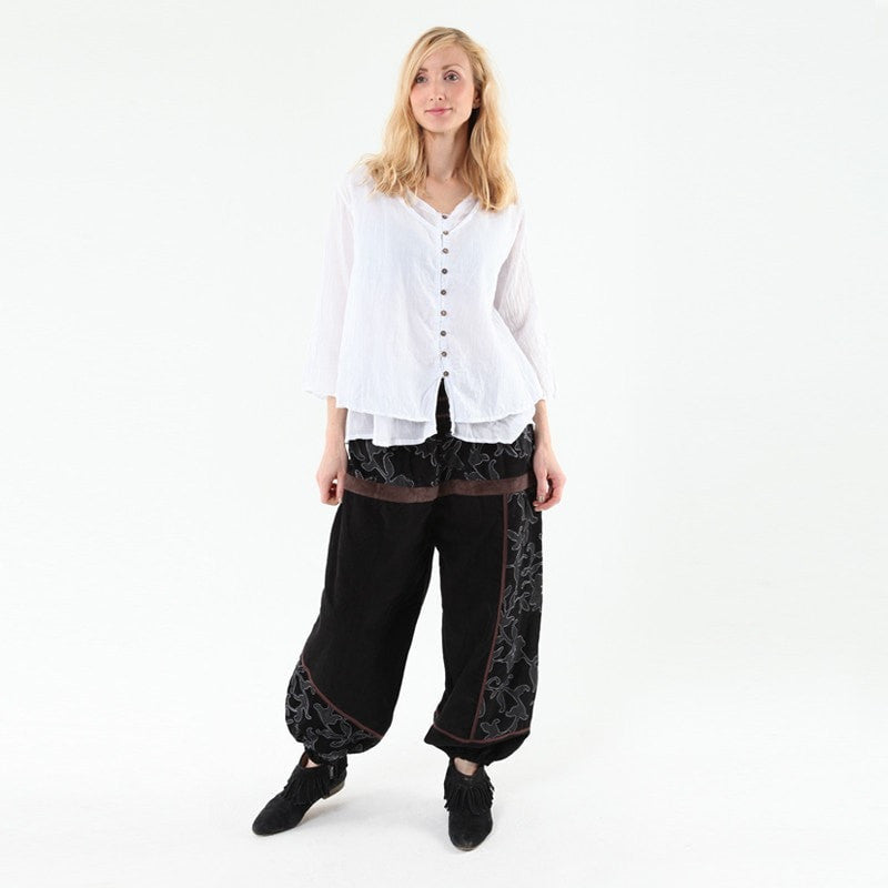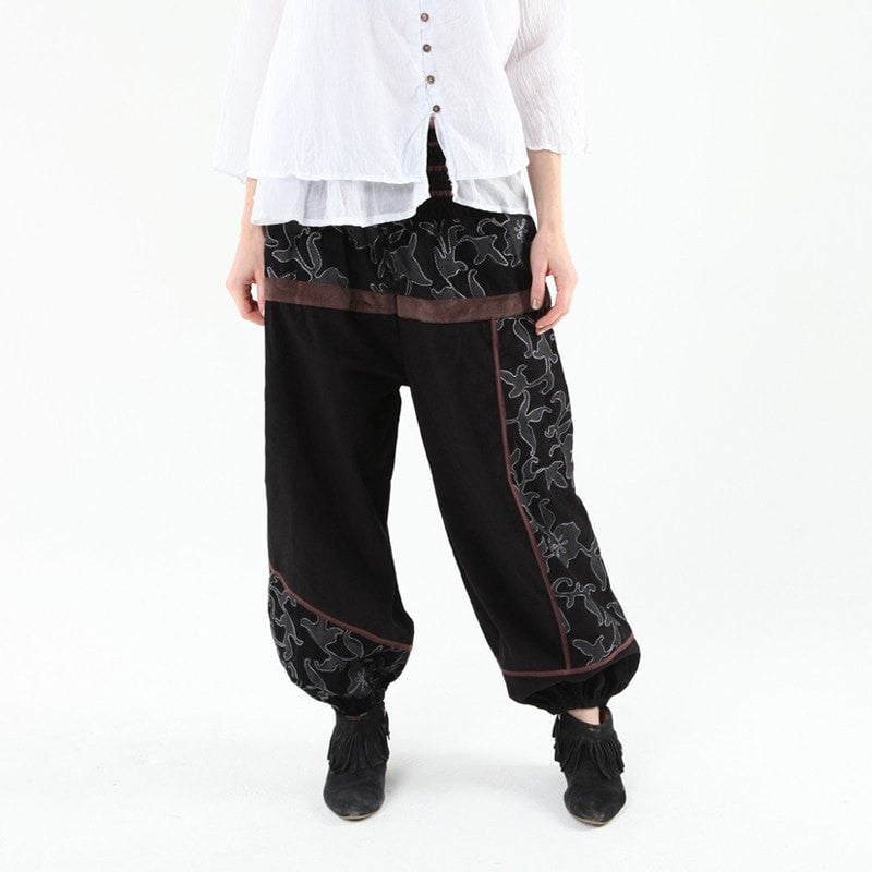 The weather is getting colder and you want something cosier than the regulation fine, light, floaty harems. You want warmth and cosiness, but you still want that classic harem pant styling. Not a problem - we've sourced this pair of black cord harem pants for you, a real winter warmer with oodles of boho personality. Chuck your big boots or Converse on, grab a warm woollie and you're ready for the famously unpredictable British winter.